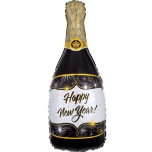 Balon folie figurina Sticla Sampanie Happy New Year, It’s Party Time, 93 x 49 cm Setul contine: balon folie figurina