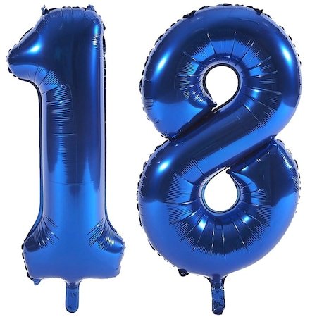 Baloane folie majorat, cifra 18 albastru, 81 cm, It’s Party Time