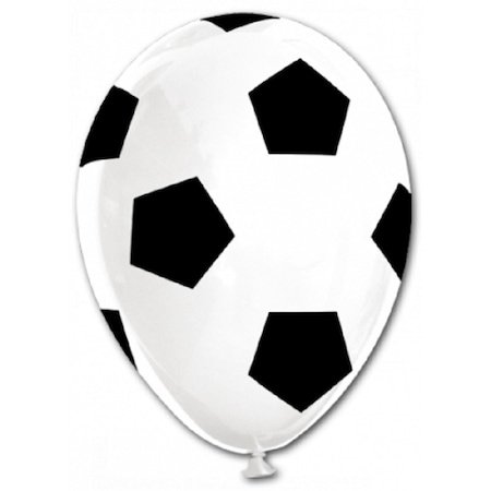 Baloane latex, diametrul 30cm, inscriptionate pe toata suprafata cu tema footbal, ambalare 10 buc. albe, productie Italia. Baloanele pot fi umflate cu aer sau cu heliu. Baloanele se livreaza neumflate.