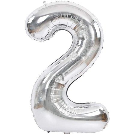 Balon aniversar, Atomia, Din folie de aluminiu, Cifra 2, Argintiu, 82 cm