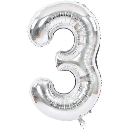 Balon aniversar, Atomia, Din folie de aluminiu, Cifra 3, Argintiu, 82 cm