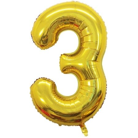 Balon aniversar, Atomia, Din folie de aluminiu, Cifra 3, Auriu, 82 cm