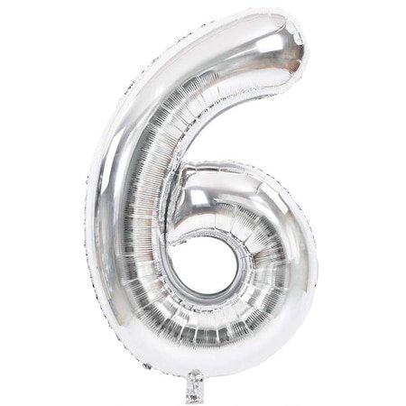 Balon aniversar, Atomia, Din folie de aluminiu, Cifra 6, Argintiu, 46 cm