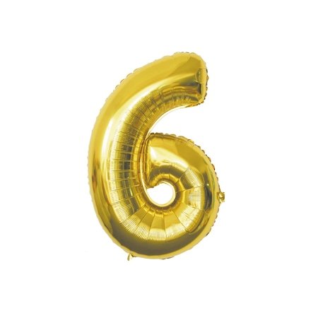 Balon aniversar cu folie metalizata, cifra 6, auriu, XXL, 110 cm