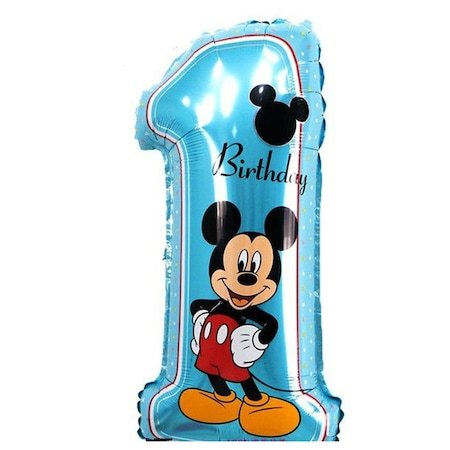 Balon Cifra 1 Mickey Mouse, 81 cm, Aniversare, Folie Figurina Albastru
