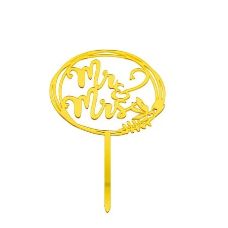 Decoratiune Topper pentru tort, MR – MRS, It’s Party Time, Auriu, 10×18 cm