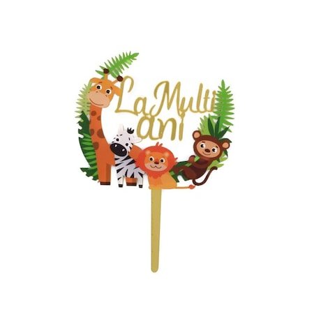 Decoratiune Topper Tort La Multi Ani 12 x 18 cm, It’s Party Time, jungle party, verde