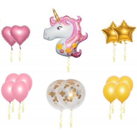 – 1 balon din folie in forma de unicorn, roz, 110 cm;
