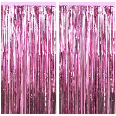 Set 2 bucati perdea decorativa, It’s Party Time, din folie roz metalizat pentru petreceri aniversare