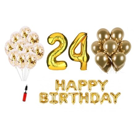 Set 36 baloane, Happy Birthday aniversare 24 ani, cifre folie 100 cm, auriu