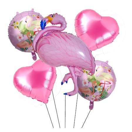 Set 5 baloane folie figurina Flamingo, It’s Party Time, 85 cm