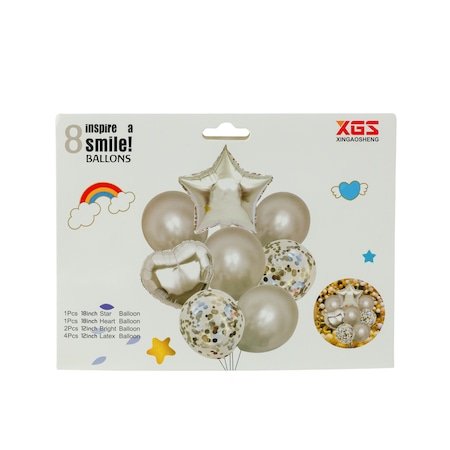 1 buc folie stea, 1 buc folie inima, 2 buc latex confetti, 4 buc latex