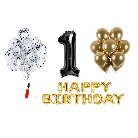 Set baloane, 35 elemente, Happy Birthday aniversare 1 an, cifra folie 101 cm, negru