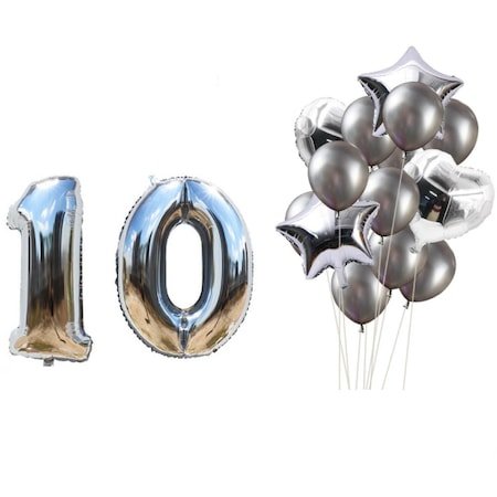 Set Baloane Aniversare 10 Ani, Argintiu, It’s Party Time