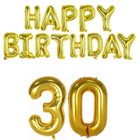 Set Baloane Aniversare 30 + Happy Birthday, It’s Party Time Setul contine: – baloane din folie Happy Birthday, dimensiuni 40 cm – 13 litere; – balon din folie, cifra 3, dimensiune 81 cm – 1 bucata; – balon din folie, cifra 0, dimensiune 81 cm – 1 bucata; – culoare auriu. * Baloanele se livreaza neumflate. * Cifrele pot fi umflate atat cu aer cat si cu heliu. * Literele se pot umfla doar cu aer. Baloanele din folie umflate cu heliu se mentin intre 5 – 10 zile, in functie de dimensiunea si forma lor. Cu aer pot sa se mentina umflate chiar si mai multe luni. In functie de setarile fiecarui monitor sau producator, culorile pot sa difere de cele afisate. * Este recomandat ca baloanele sa fie ferite de soare, aer conditionat, ger etc pentru ca se pot sparge sau se pot desumfla mai repede.
