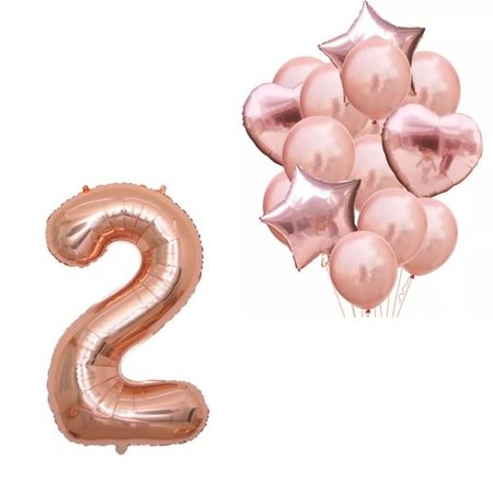 Set Baloane Aniversare Cifra 2, rose gold, It’s Party Time