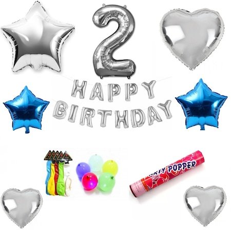 Set Baloane Aniversare Happy Birthday 2 Ani, Argintiu, It’s Party Time