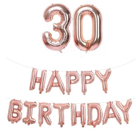 Set Baloane Aniversare Happy Birthday 30 Ani, Cifre Folie Rose Gold, It’s Party Time