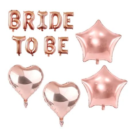 Set Baloane BRIDE TO BE Rose Gold , 2 inimi si 2 stele rose gold de 45 cm