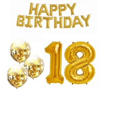 Set baloane cifra 18 auriu, litere Happy Birthday, 3 baloane confetti auriu