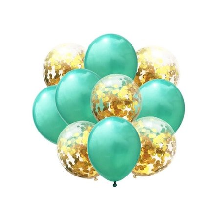 Set baloane latex, 10 buc, 5 buc baloane confetti gold, 5 buc baloane verde menta