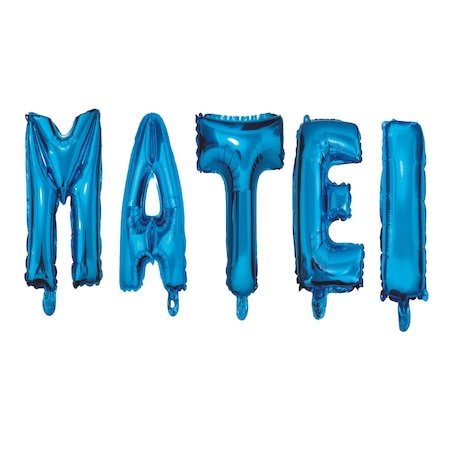 Set Baloane Litere Nume Matei, Albastru, Wili Topper Rom, 40Cm
