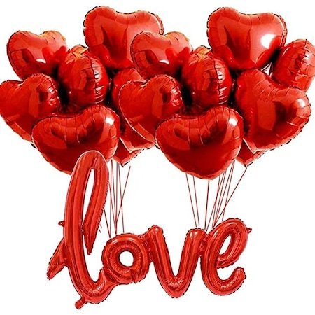 Set baloane Valentine’s Day, LOVE, 10 Inimi, culoare rosu, It’s Party Time Setul contine: – baloane din folie litere LOVE, 78 cm inaltime, 100 cm lungime – 1 bucata; – baloane din folie in forma de inima, 45 cm – 10 bucati; – culoare rosu. **Setul contine pai pentru umflarea cu usurinta a baloanelor Nuantele de culoare reale ale produselor pot fi usor diferite fata de imaginile vizualizate pe ecranele digitale *Va rugam sa umflati cu atentie baloanele si sa evitati umflarea excesiva pentru a preveni spargerea acestora. Baloanele din folie umflate cu heliu se mentin intre 5 – 10 zile, in functie de dimensiunea si forma lor. Cu aer pot sa se mentina umflate chiar si mai multe luni. * Este recomandat ca baloanele sa fie ferite de soare, aer conditionat, ger etc pentru ca se pot sparge sau se pot desumfla mai repede. Se umfla usor cu ajutorul paiului din pachet sau cu ajutorul unei pompe manuale, iar pentru a crea un decor ca cel din imagini se pot umfla si cu heliu.