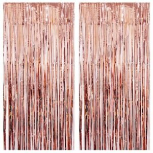Set 2 bucati perdea decorativa, It’s Party Time, din folie rose gold metalizat pentru petreceri aniversare