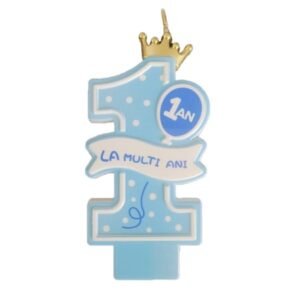 Lumanare tort cifra 1 albastru coroana si balon 11 x 5 cm